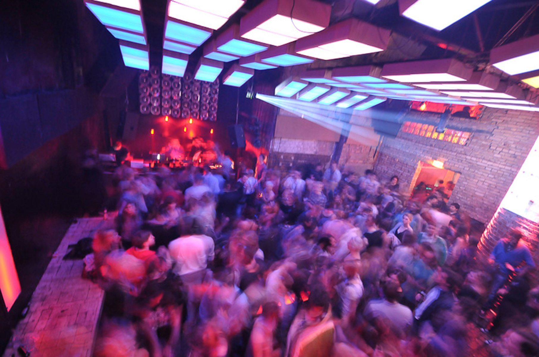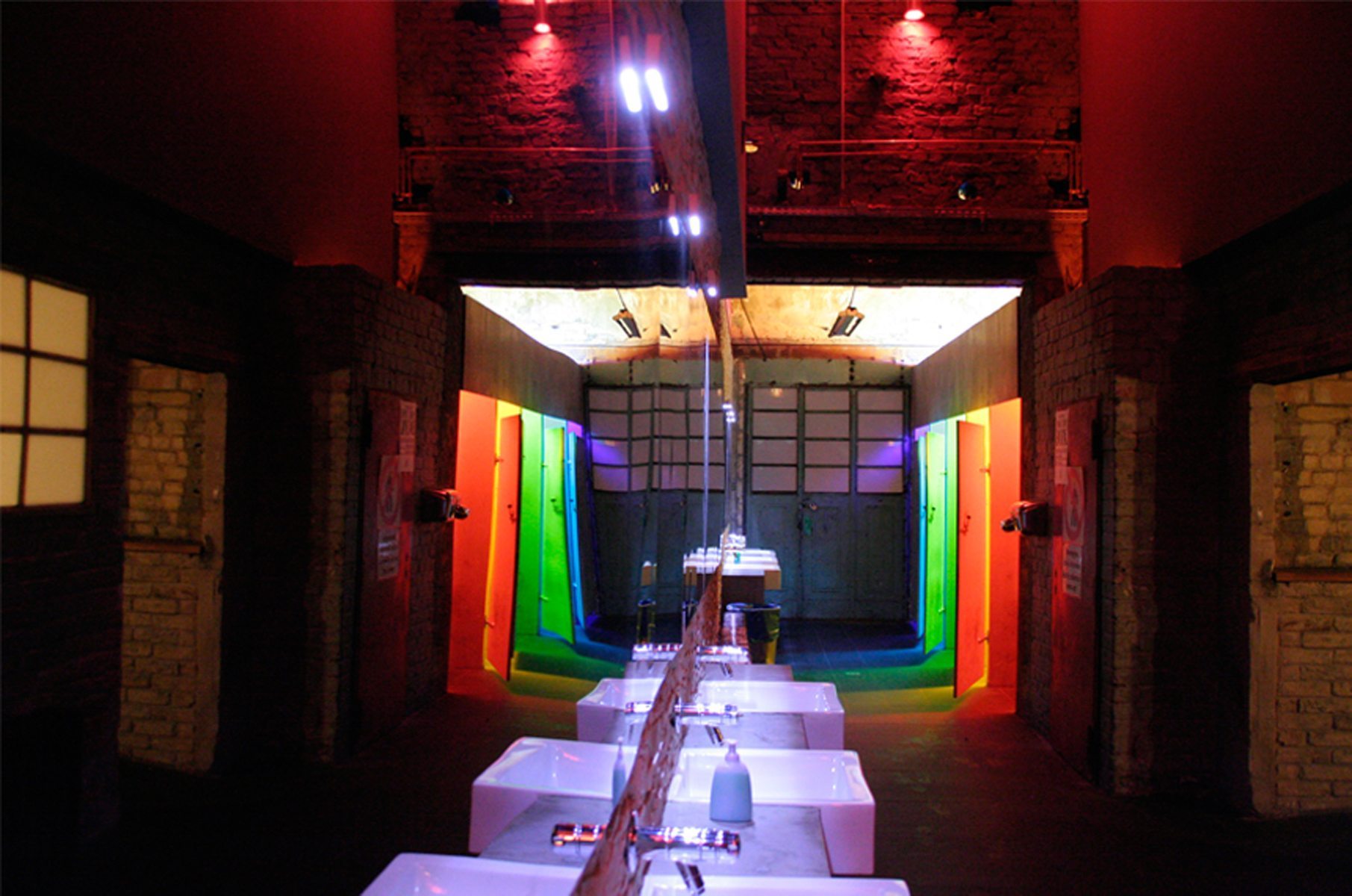 Adecuación de unos espacios que albergaban técnica en desuso de la Arena para su uso como Club. Parte de los elementos decorativos son la propia maquinaria original del espacio.