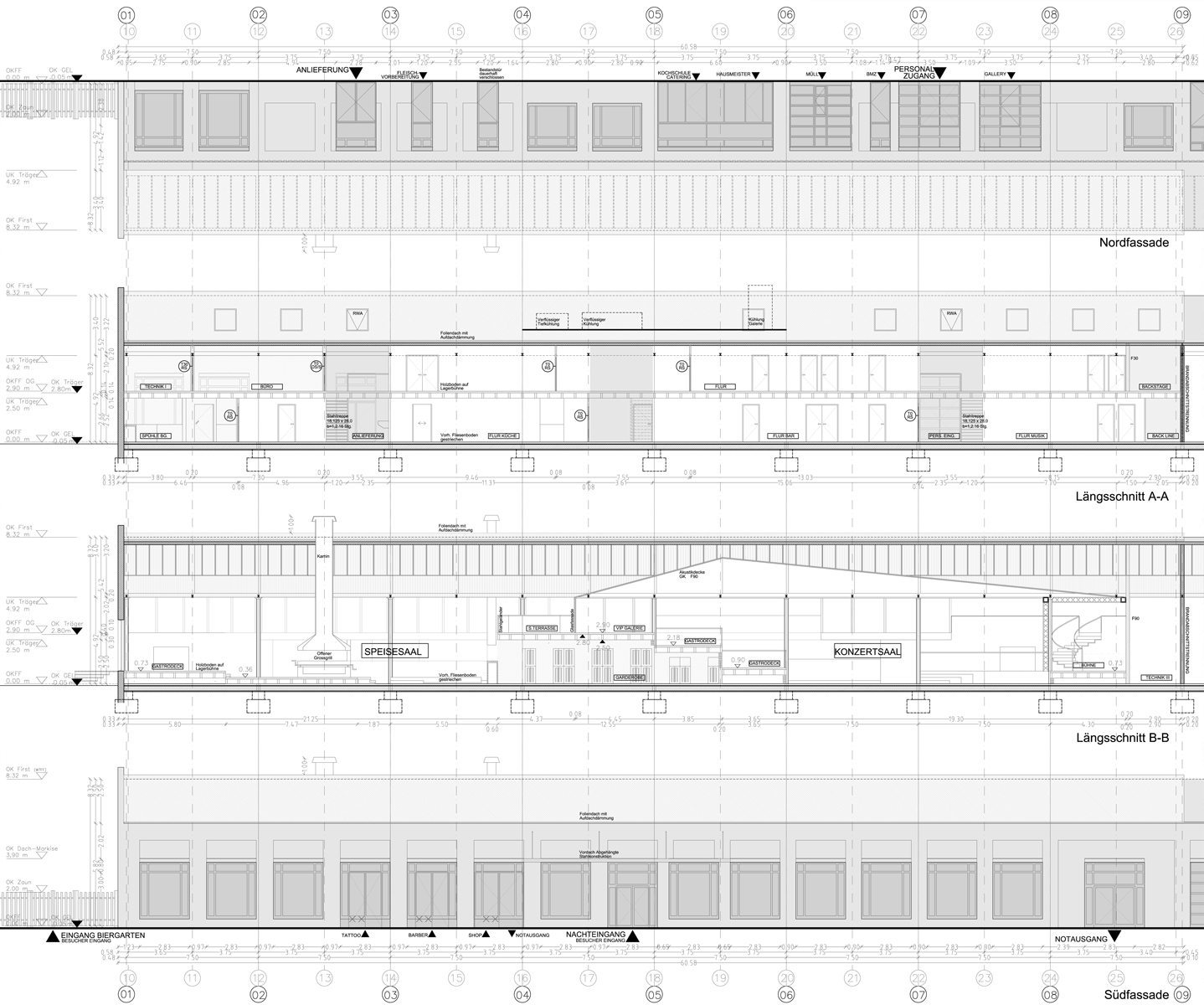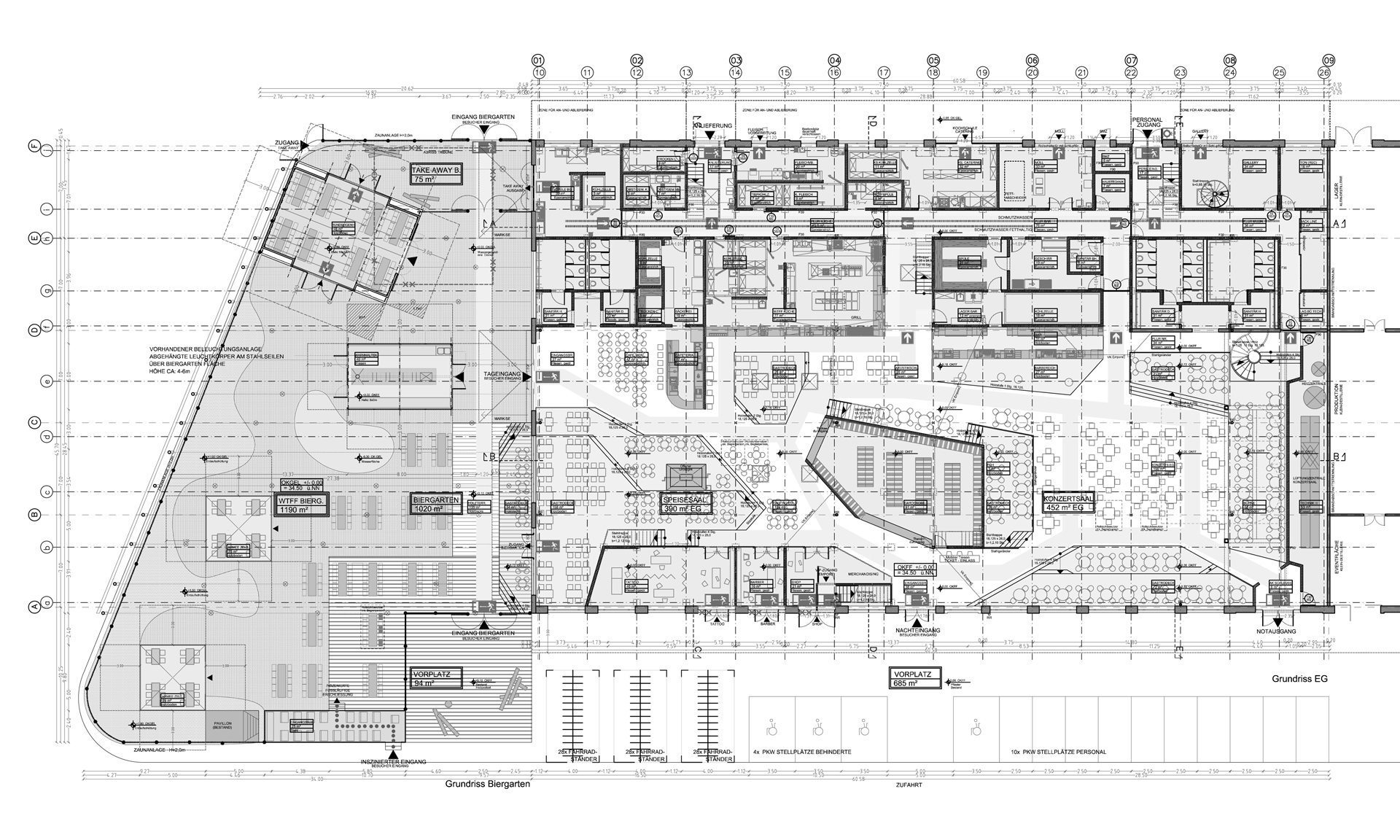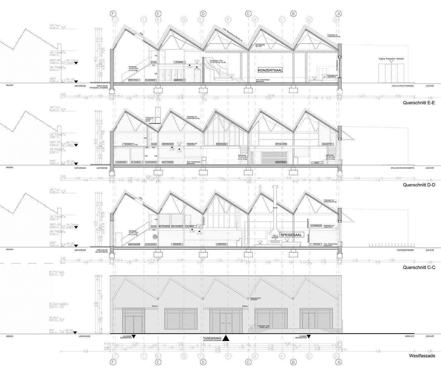 Für den Treptower Standort des legendären Berliner Clubs White Trash Fast Food, nach Betreiberwechsel heute unter dem Namen Festsaal Kreuzberg firmierend, wurde in einer denkmalgeschützten Industriehalle eine weitläufige Nutzfläche für einen kulturellen Angebotsmix auf zwei Ebenen konzipiert. Im Event-Portfolio: ein Restaurant, eine Konzerthalle, eine Kochschule, ein Tattoo-Studio mit angeschlossenem Barbershop und ein riesiger Biergarten.
